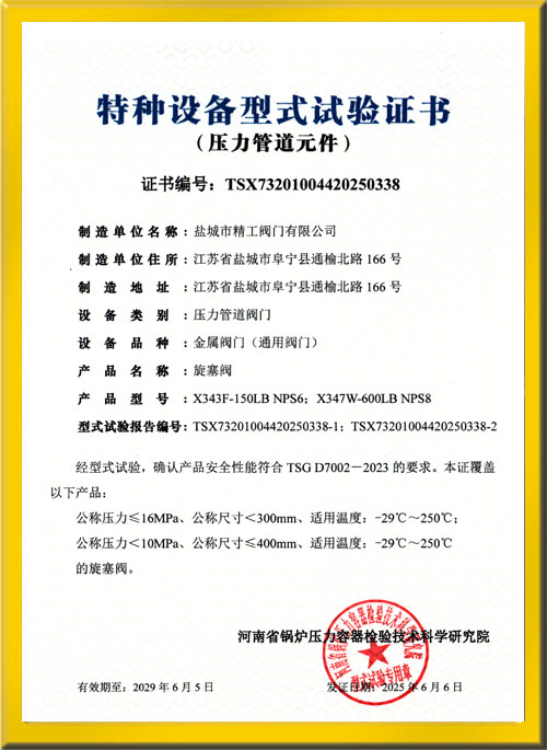旋塞閥試驗證書